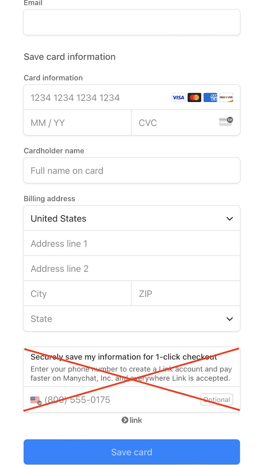 Avoid using the Link at checkout.