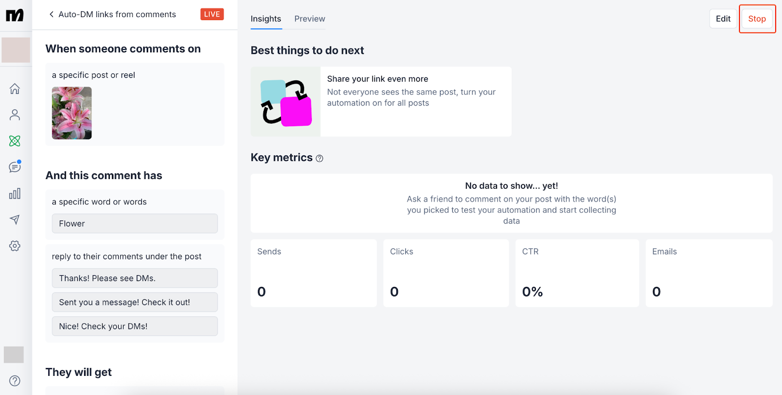 So while the difference between Runs and Sends may seem technical at first, it actually provides valuable insight into how your audience is interacting with your automation, and why using an Opening DM can be a strategic choice.