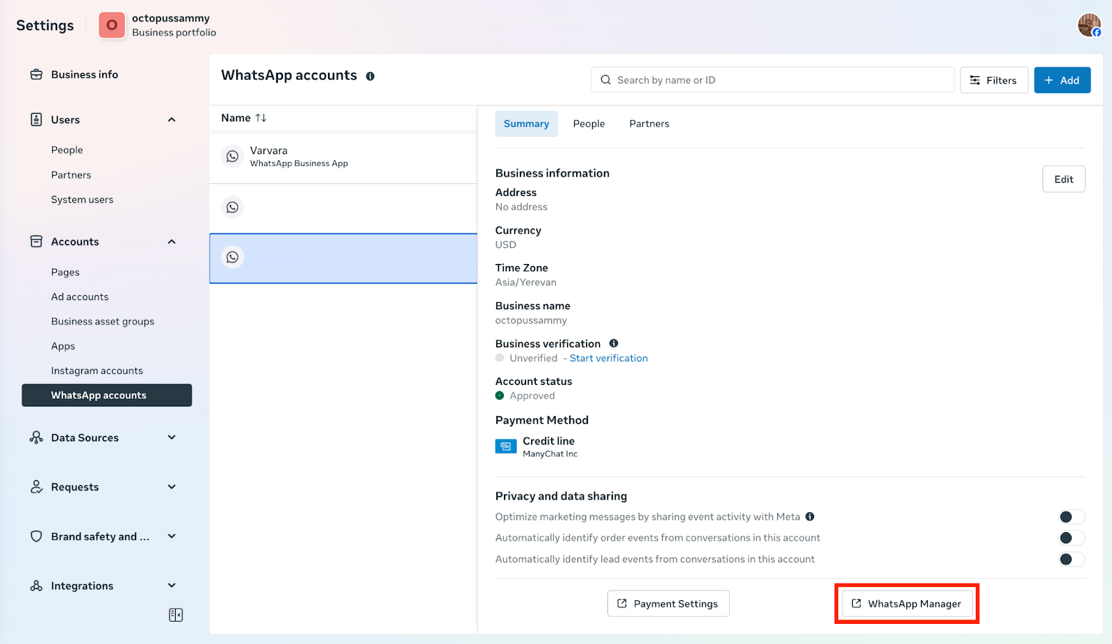 💡 For details on Facebook verification, check out the article How to transfer your own WhatsApp number to Manychat.