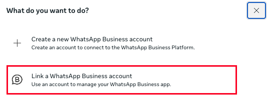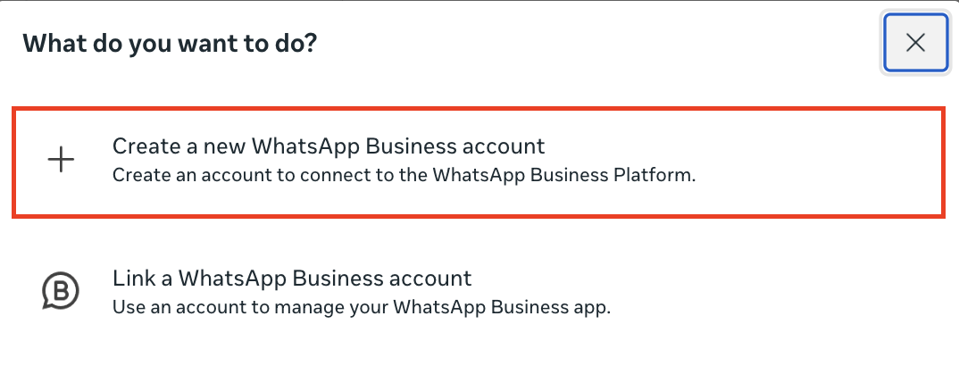 - In the window that opens, select Create a new WhatsApp Business Account.