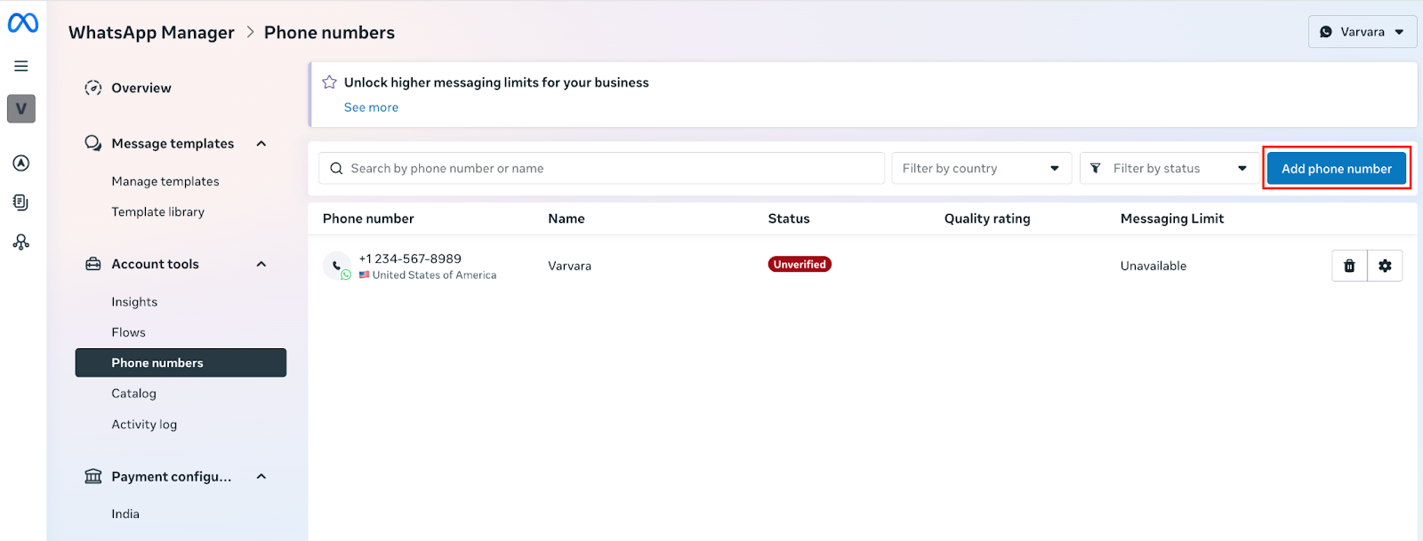 - Once your new WABA is set up and your number is registered, you can connect it to Manychat and build exceptional customer experiences.