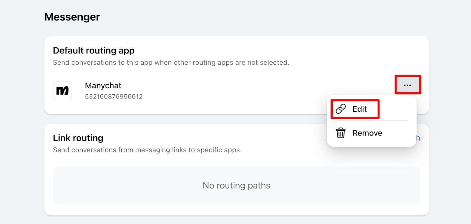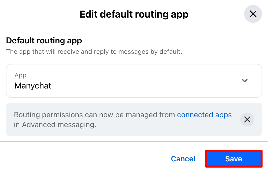 To make sure Manychat routes your customer messages correctly, set up Conversation Routing on your connected Facebook Page.