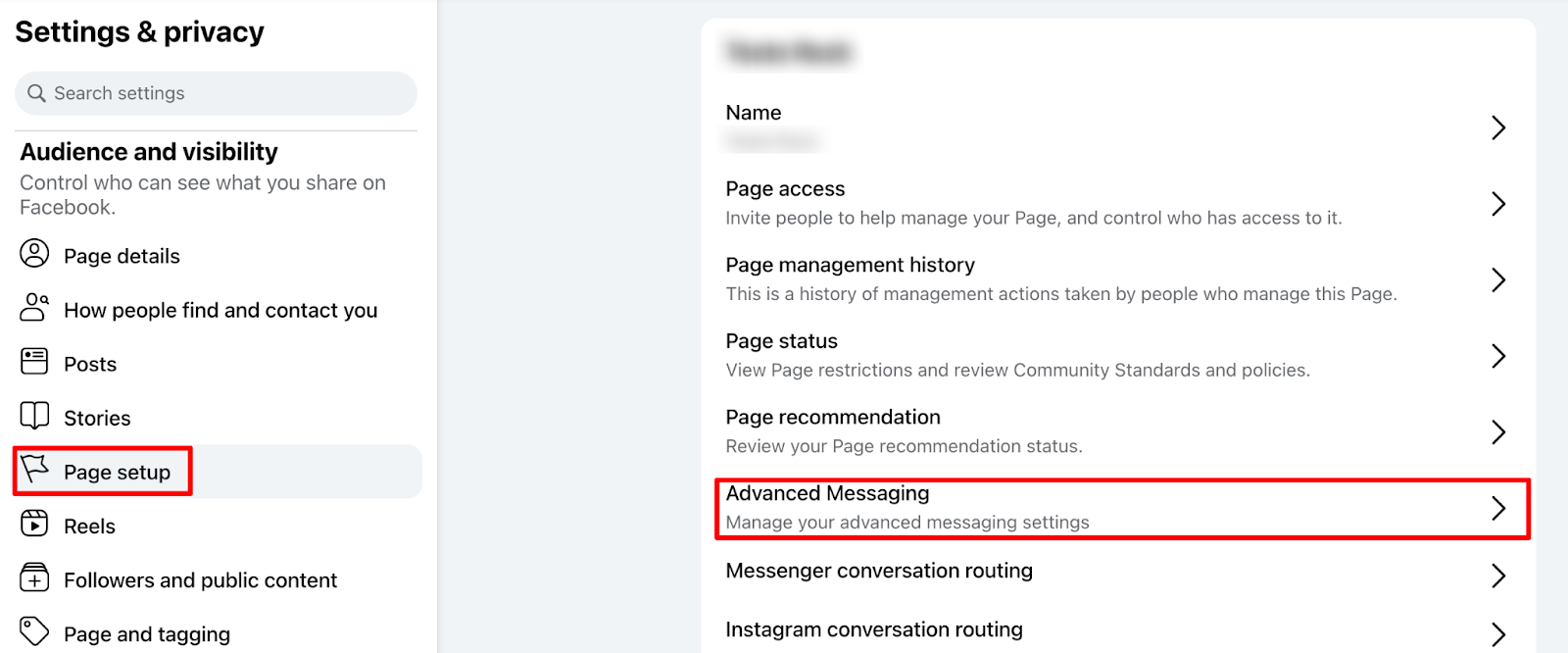 - Open your Facebook Business Page Settings and switch to the Page setup tab.