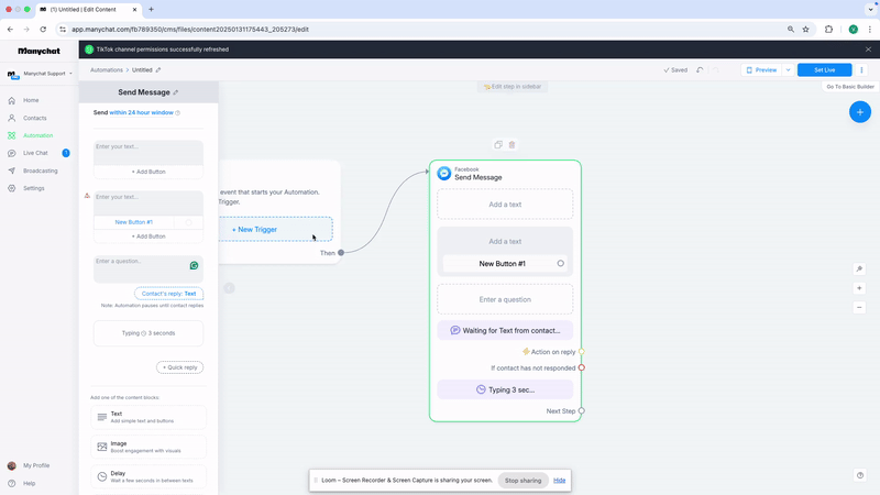 Básicamente, los bloques de contenido de Manychat son los cimientos de tu automatización. Te permiten crear conversaciones dinámicas, personalizadas y atractivas en diferentes canales de mensajería. Si bien muchos bloques están disponibles en varias plataformas, no todos los canales admiten las mismas opciones. En este artículo, exploraremos los diferentes tipos de bloques y cómo usarlos con eficacia para aprovechar al máximo tu experiencia de mensajería.