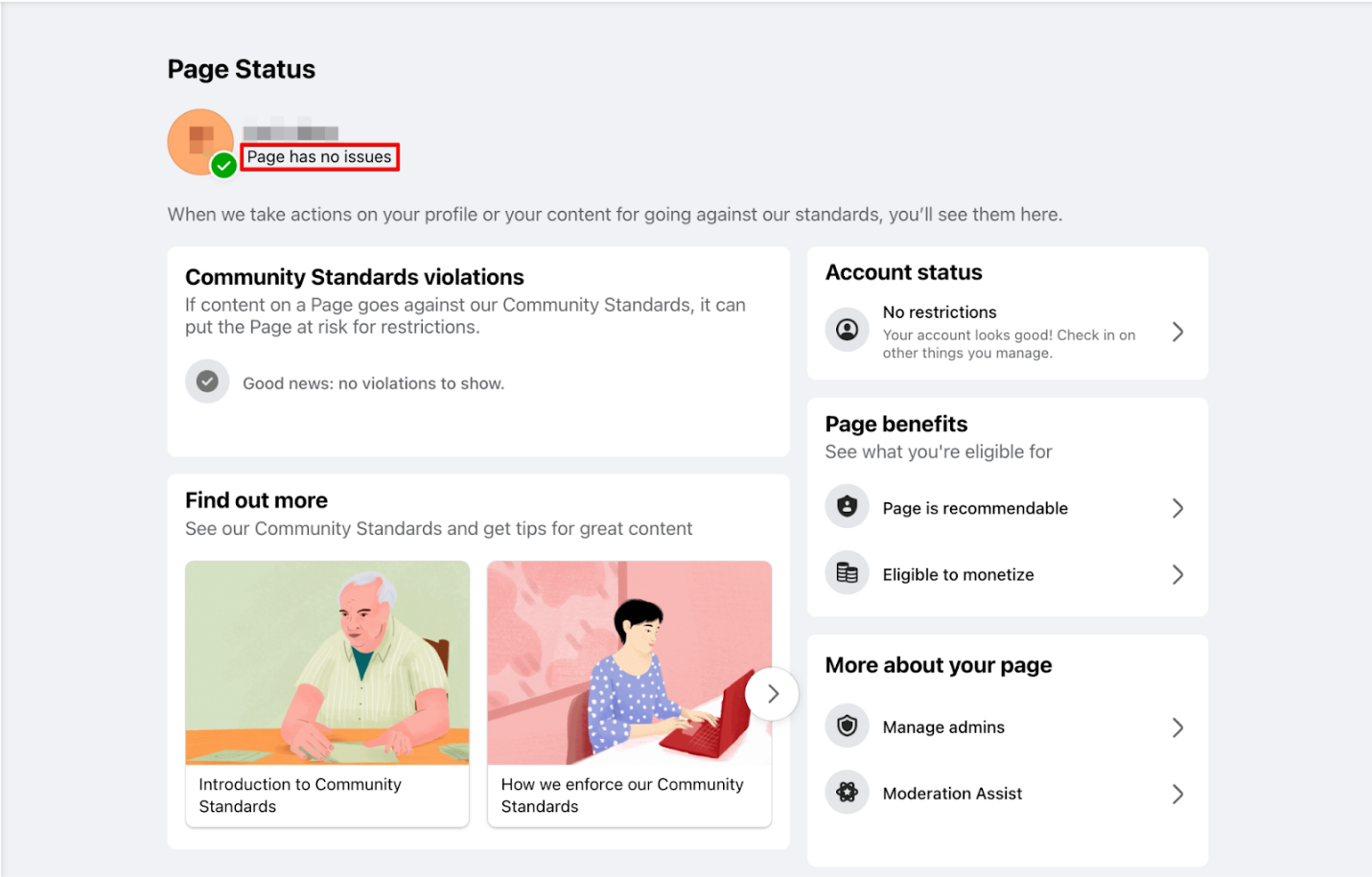 Como verificar o status da sua página: